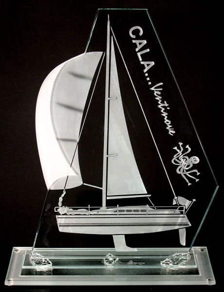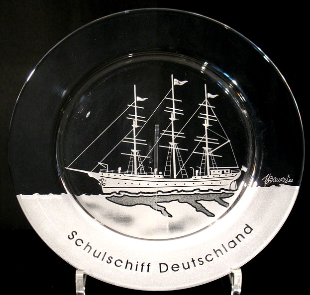 Here the glass designer's particularity is his manner of glass refinement in combination with other precious materials. Having three different professions and thus being able to work as a cabinet maker and pattern maker, as a specialist for glass refinement, and as a glass artist he combines these three professions of his with immense ingenuity, professionalism, and flexibility.